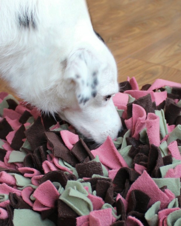 Because I have chosen colors that match our interior, it kind of looks like a new cushion! But more importantly, Dory is very happy with it!!! It also seems to be fun for other pets, such as cats and rabbits. Just make sure to only let your pet play with toys and brain games under supervision.