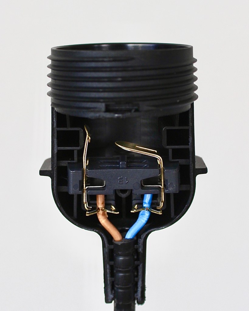 - Stop de stroomdraad terug in de fitting en klik hem dicht. Wij hebben voor de zekerheid ook nog isolatietape gebruikt om het extra goed te sluiten.